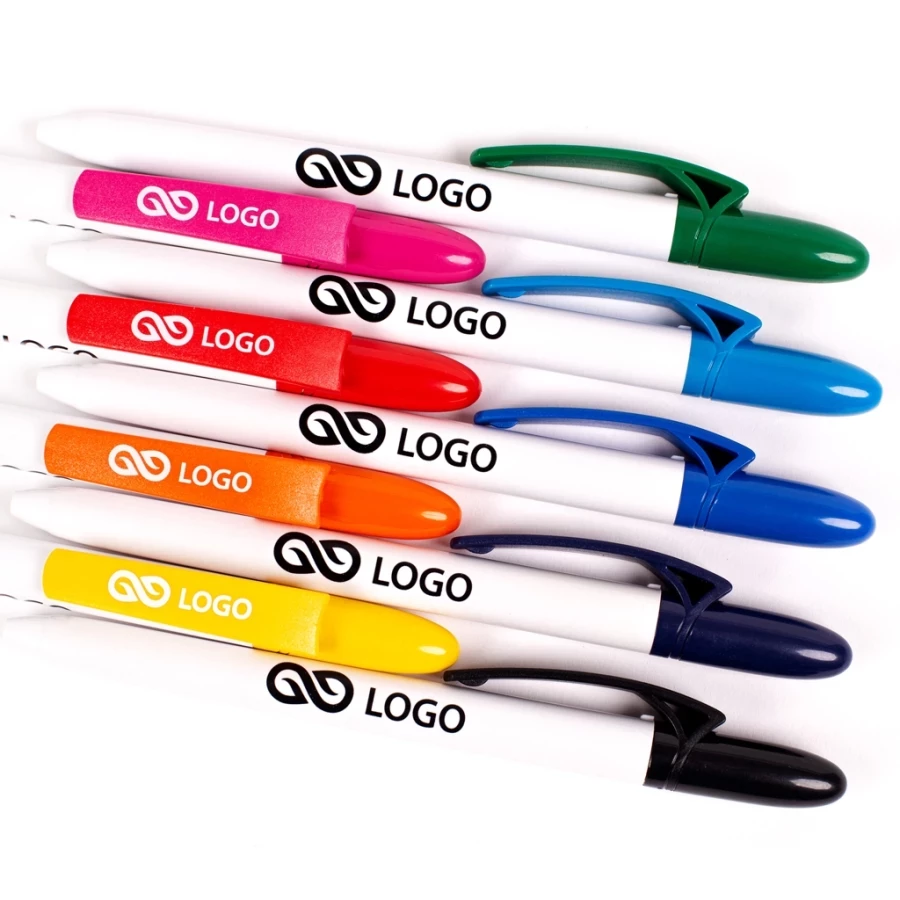 Vous êtes à la recherche de stylos promotionnels imprimés originaux ? Le stylo en plastique Fill White, qui se distingue par ses couleurs gaies et son design esthétique, pourrait répondre à vos attentes. Les stylos promotionnels Fill White sont fabriqués en plastique ABS robuste, ce qui les rend durables et faciles à utiliser. La recharge se déverrouille en tournant doucement le clip. Le corps blanc du stylo est l'endroit idéal pour votre logo ou l'inscription de votre choix. Les stylos promotionnels en plastique Fill Withe sont marqués par tampographie, ce qui signifie que l'impression est permanente et n'entraîne pas de coûts exorbitants. Un stylo publicitaire est un moyen peu coûteux de faire un cadeau d'entreprise pratique - il vaut donc la peine qu'il soit beau et qu'il dure longtemps.