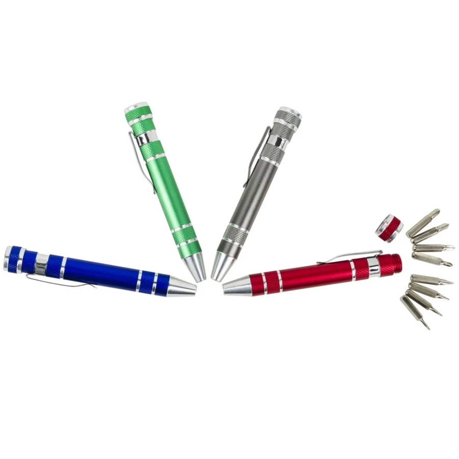 Le tournevis Tate est un petit gadget multitâche que les bricoleurs passionnés ne seront pas les seuls à apprécier. Sous la forme d'un "stylo" élégant, cette aide intelligente dissimule jusqu'à huit embouts interchangeables (quatre plats et quatre Phillips), ce qui facilite les petites réparations à la maison, au bureau ou dans l'atelier. Fabriqué en aluminium durable, il est léger, pratique et d'aspect très professionnel. Parfait comme cadeau promotionnel pratique qui ne finira pas dans un tiroir, mais dans... au quotidien. Avec le logo de votre entreprise sur l'étui, il devient un support de marque fonctionnel - idéal pour les salons, les événements promotionnels ou comme cadeau pour les clients.